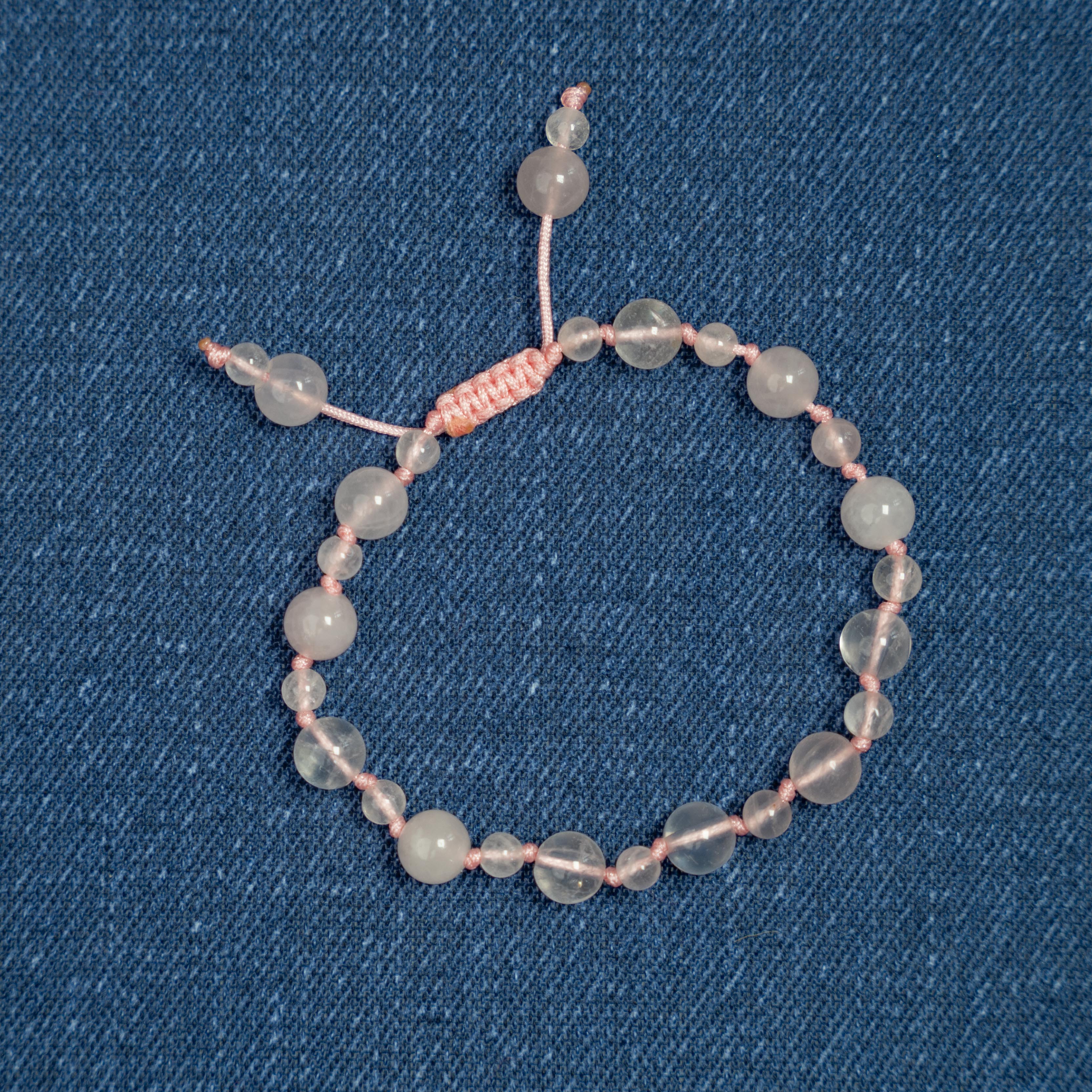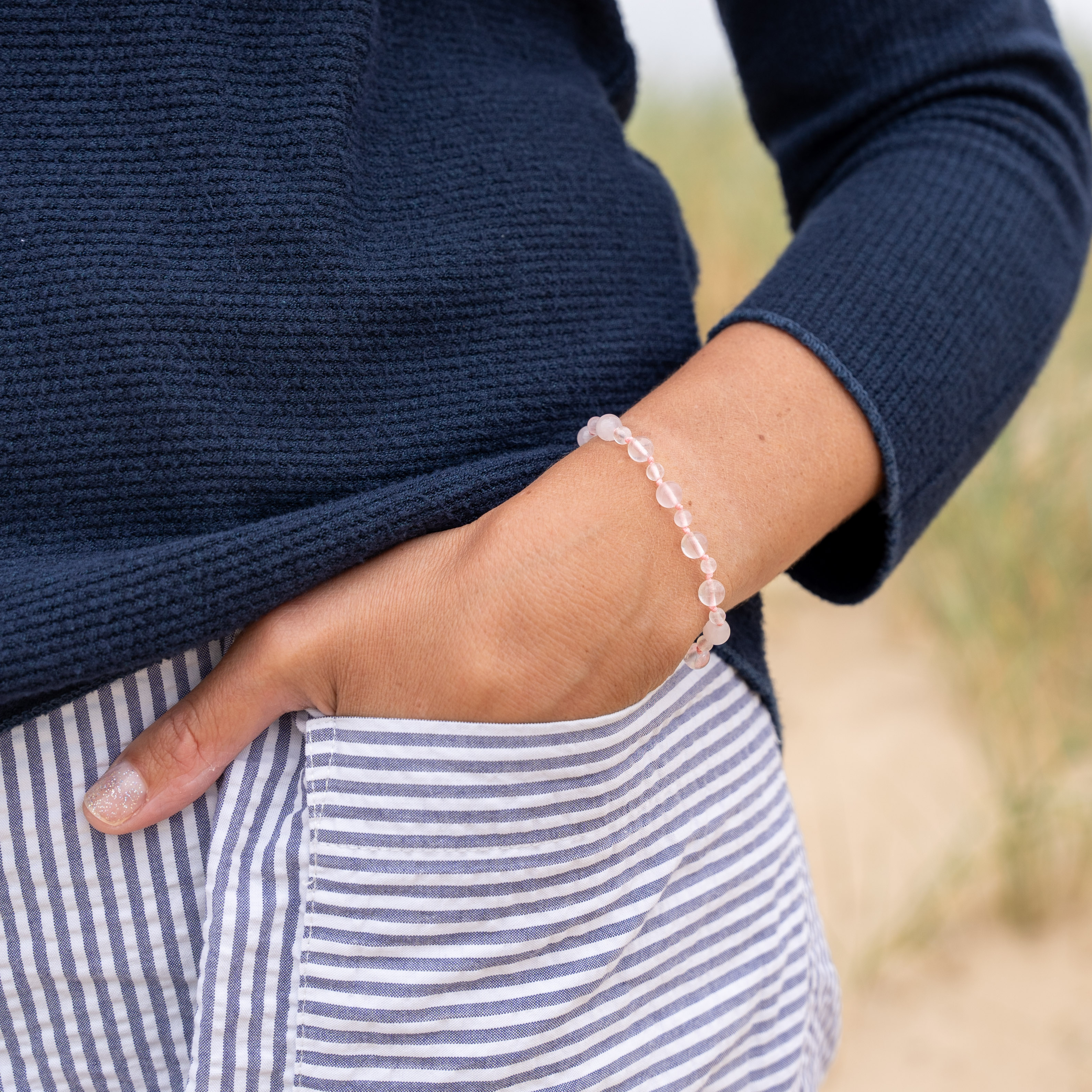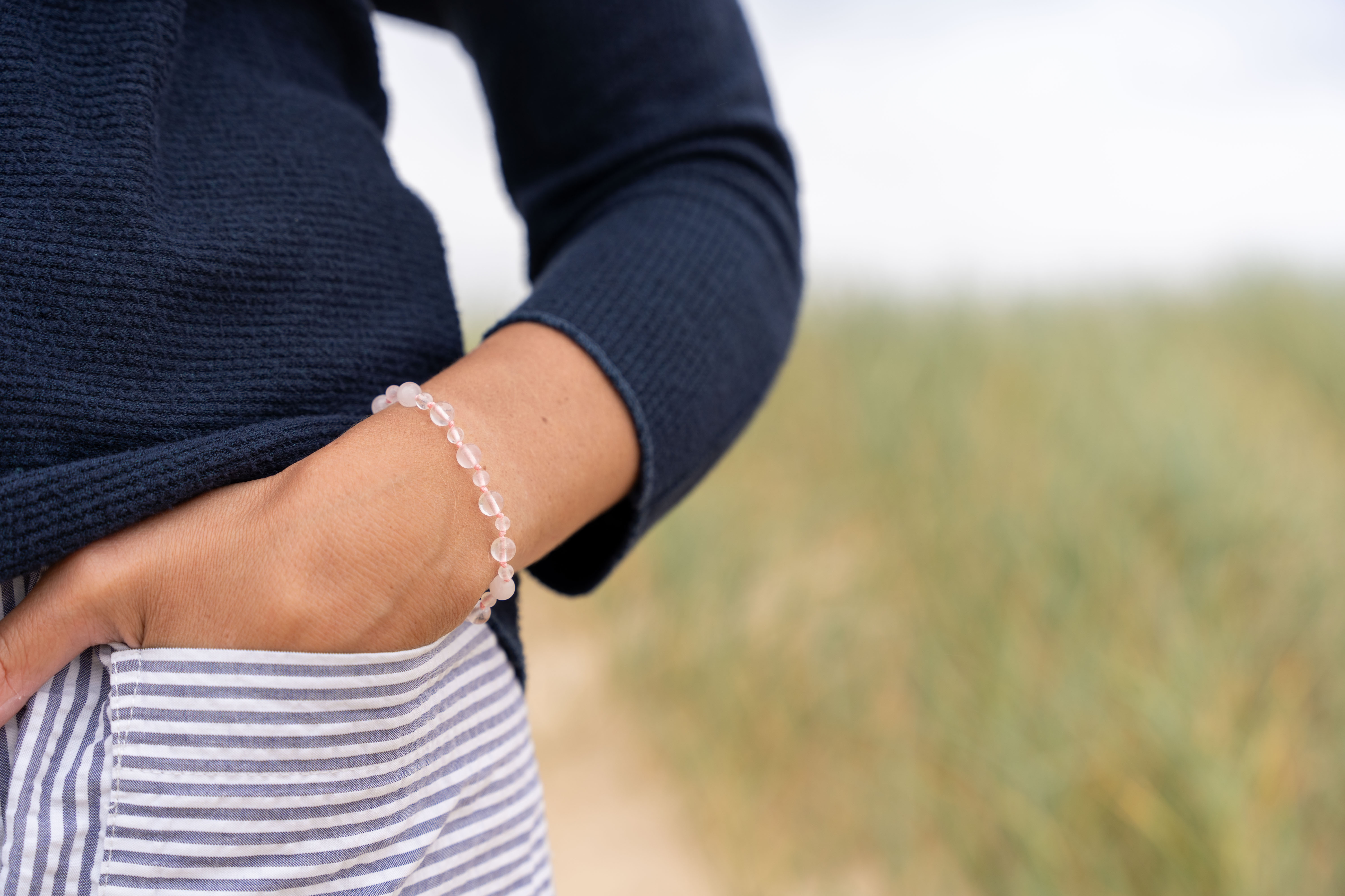 Bracelet en quartz rose claire (perles de 6 mm env. et 4 mm env.).